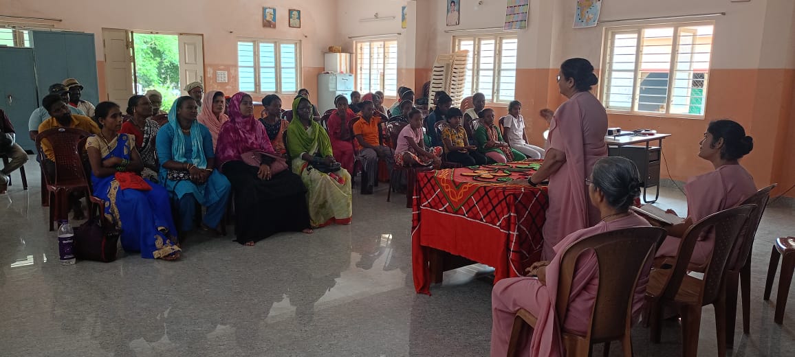 We have 34 SHG’s for women & 6 SHG’s for men & youth. In addition to encouraging women for self-employment and giving them handholding support to get subsidy loans & revolving funds for SHG’s, we train them on various thematic issues such as Health, Sanitation and Education. Lately we have been able to sensitize them about front line and burning issues of Human Trafficking, Migration, Substance Abuse, Addictions to Social Media, Legal Awareness on the Right to Protection and Safety of Women in the context of rise in violence against women, Mental Health Issue like Depression, its causes, symptoms and treatment, Impact of Parenting Style on Children’s Holistic Growth, Importance of Expressing Emotions, Understanding Love Languages in Enhancing Marital satisfaction, Understanding Love Languages to Better Adaptability.