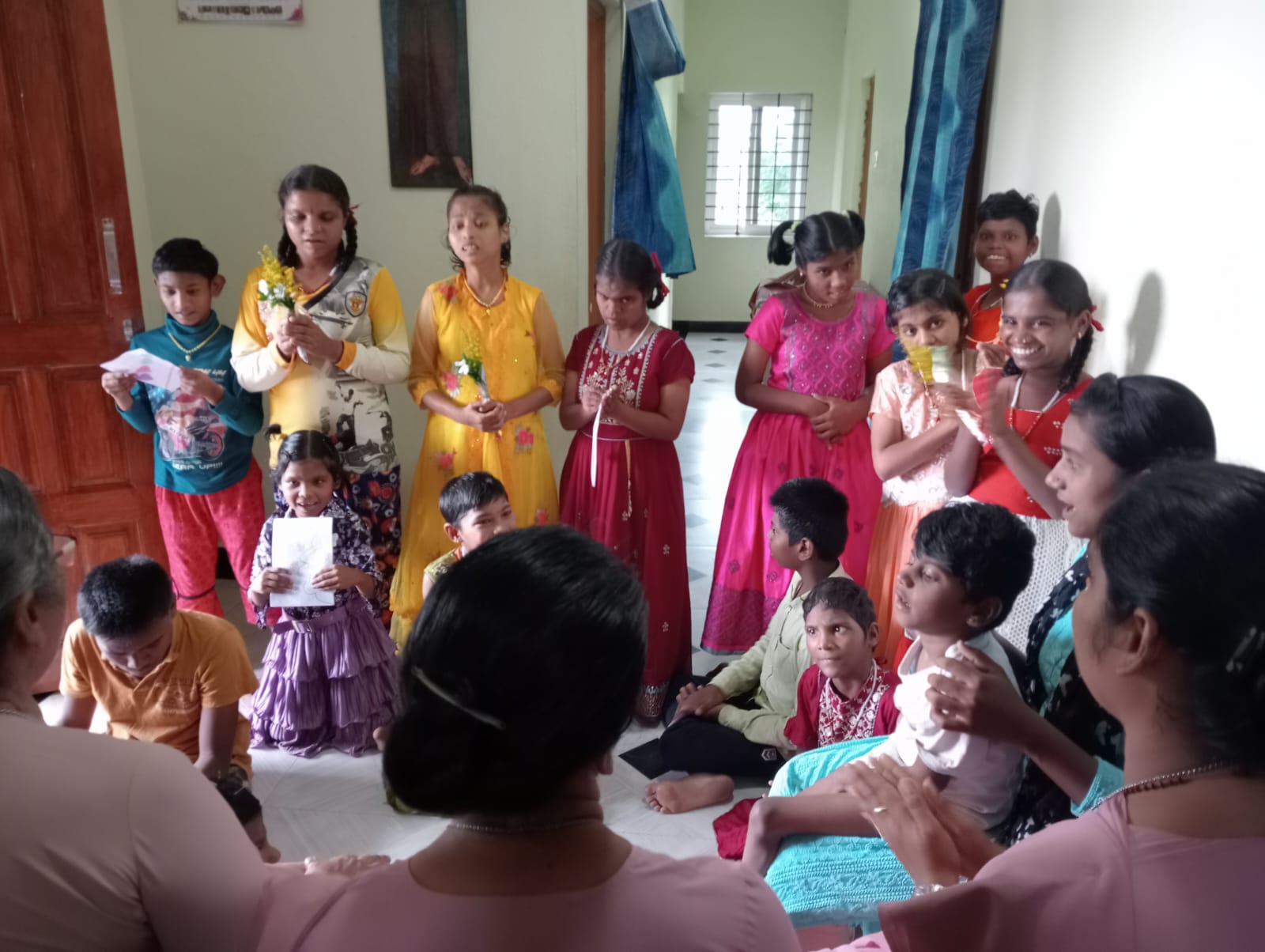 Sisters were successful in instilling a desire for learning in the children of Durgamurgi community, a community neglected by the rest of the society as they were the swine eaters. No one visited these people. Their children were deprived of basic education even though the Government School was a stone throw distance. The constant visit to these people and meeting the leaders of the community and the school nearby the sisters succeeded to admit all the children to the school including the Anganwadis. During their visits they taught some rhymes, alphabets, numbers etc to the children over a period of one year. Sisters then took a survey of the children belonging to the age group 3 to 6 yrs and the school dropouts.